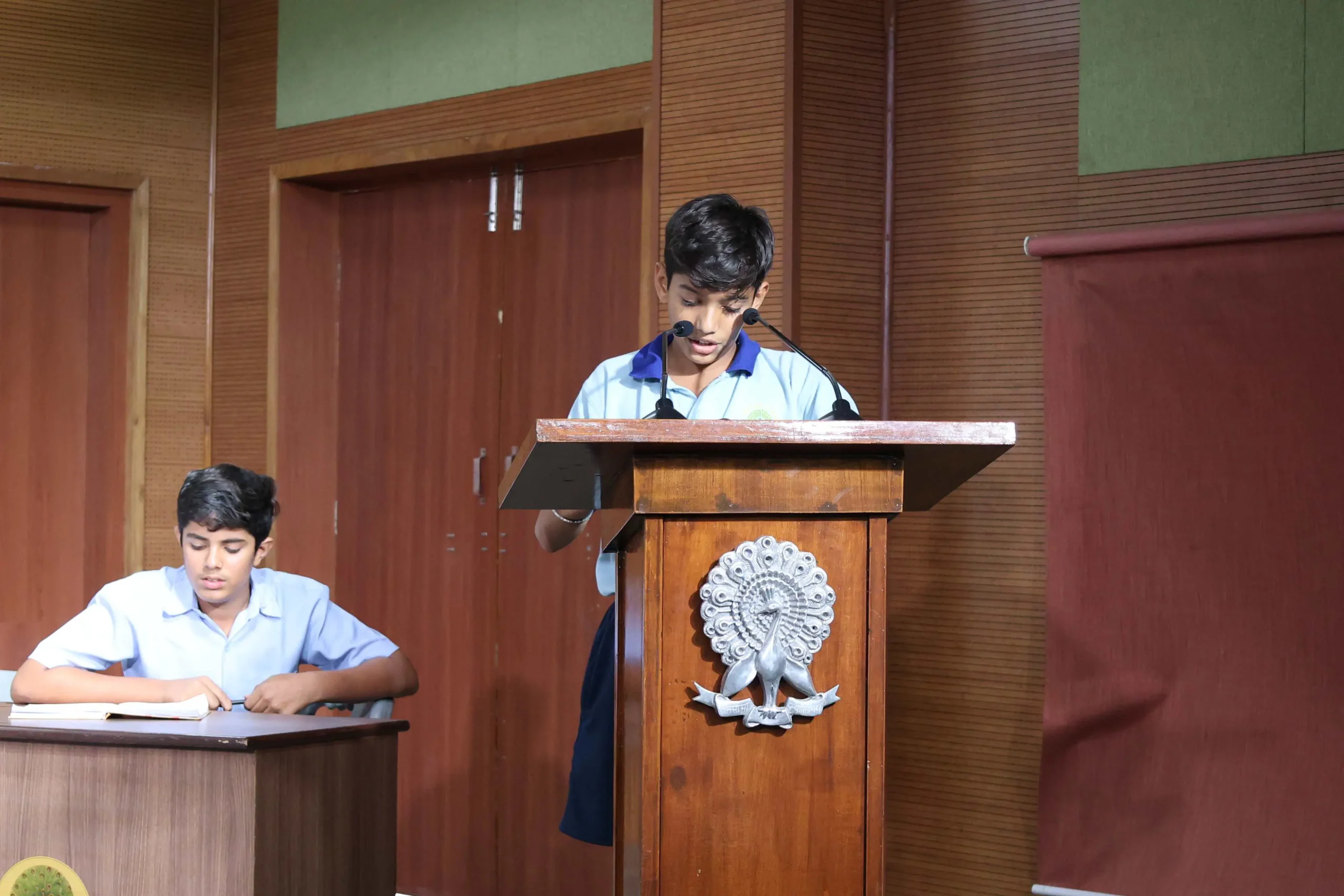 Inter-House English and Hindi Character Enactment was organised for the children of Classes III to V on Tuesday, 7 October 2025. A total of thirty-two enthusiastic participants brought the stage to life